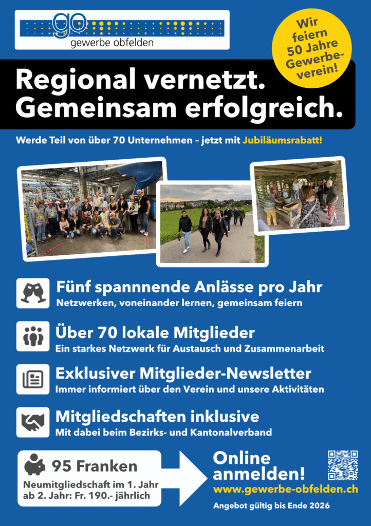 Unsere Mitglieder haben ihre Betriebe in Obfelden selber oder in nächster Nähe. Unterstützen Sie das lokale Gewerbe, denn das schafft Arbeitsplätze und Lehrstellen in Ihrer unmittelbaren Nähe.