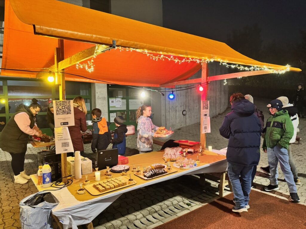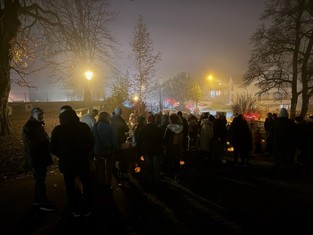 Auch die ElternMitWirkung war präsent und versorgte die Besucherinnen und Besucher mit Kuchen, Punsch und Glühwein. Lehrer Christopher Bond sang, mit Gitarre ausgestattet, zusammen mit den Kindern das Räbeliechtli-Lied, die Ohrestüber Musikanten spielten in der restlichen Zeit fast ohne Unterbruch und sorgten für eine gemütliche Stimmung.